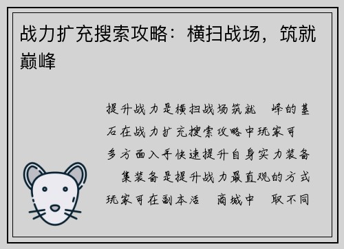 在纷繁复杂的攻城战中,晶石攻略犹如一柄锋锐的宝剑,直指城墙的咽喉。它以无穷的能量和毁天灭地的威力,让坚固的堡垒化为齑粉,为大军打开胜利之门。 晶石之威,震慑四方 晶石是一种蕴含着浩瀚灵力的稀有宝石。当它被激活时,便会迸发出耀眼的光芒和毁灭性的力量。这些力量凝聚成一束束能量光柱,能够轻而易举地击穿城墙,摧毁防御工事。J9九游会ֹ...