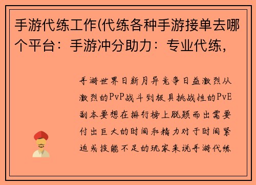 Steam魔兽英雄如何在手机上玩 介绍 Steam是一款广受欢迎的游戏平台,而魔兽英雄是其中一款备受喜爱的游戏。许多玩家想知道如何在手机上玩Steam魔兽英雄。本文将详细介绍如何在手机上玩Steam魔兽英雄,为玩家提供便利和乐趣。 选择合适的手机设备 在开始之前,选择一款适合玩Steam魔兽英雄的手机设备是非常重要的。确保手机具有足够的处理能力和内存空间来运行游戏。选择一款屏幕尺寸适中、触控灵敏的...